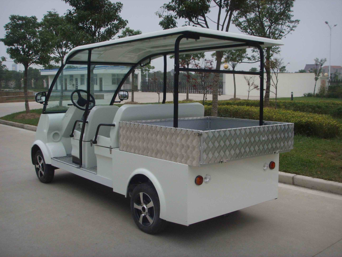玛西尔DN-8改装两排坐带斗车致力于自主创新,以其人性化、功能化的改装设计,满足客户的不同需求; 电动多用车广泛使用于大型工厂、机场、学校、医院、宾馆、等场所,真正实现健康环保,舒适节能。