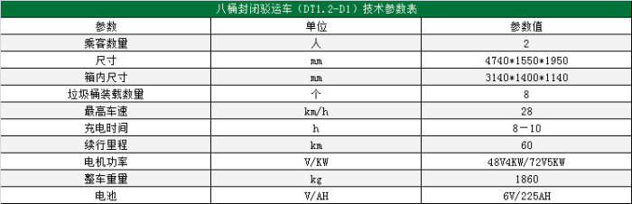 产品特点 玛西尔——八桶封闭驳运车,采用抽拉式整体更换电池组,方便快捷;进口原材料制作玻璃钢车身,美观大方;底盘采用整块绿化物板,防止污水渗漏;车箱整体玻璃钢制作,密封性好,耐腐蚀。封闭式车厢,有利于便捷、美观的装载垃圾桶。 主要用途 主要用于适用于短途驳运垃圾桶,可装载240L标准垃圾桶8个。可选配液压尾板,自动装卸垃圾桶,省时省力。 适用场所 适用于市政环卫部门、大型小区、工厂、工业园区、港口、车站、机场等单位。