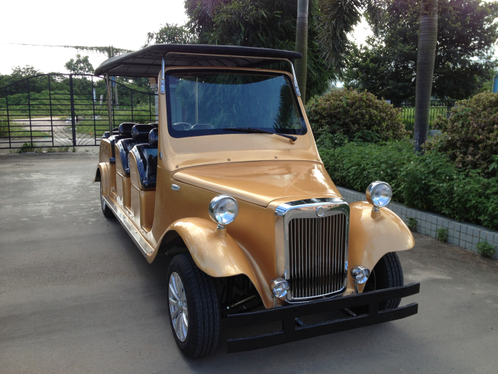 玛西尔十一座电动老爷车(DN-GB11),整车性能卓越、外观别致典雅、内饰豪华、乘坐舒适安全,是为旅游景区、公园、大型游乐场、封闭小区、校园、花园式酒店、度假村、别墅区、城市步行街、机场、港口、高尔夫球场等开发的环保型乘用车辆。
