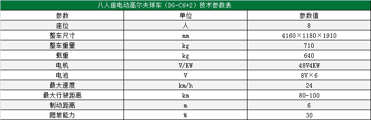 玛西尔DG-C6+2电动高尔夫球车性能稳定、操控轻便是DG-C6+2电动高尔夫球车的最大特点。DG-C6+2电动高尔夫球车在全球范围内拥有大量的客户。从高尔夫球场、别墅、酒店、学校到私人用户,DG-C6+2电动高尔夫球车都将是您最便捷的短途交通工具。
