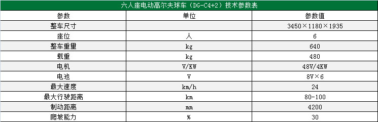 玛西尔(DG-C4+2)电动高尔夫球车性能稳定、操控轻便是(DG-C4+2)电动高尔夫球车的最大特点。DG-C4+2电动高尔夫球车在全球范围内拥有大量的客户。从高尔夫球场、别墅、酒店、学校到私人用户,(DG-C4+2)电动高尔夫球车都将是您最便捷的短途交通工具。
