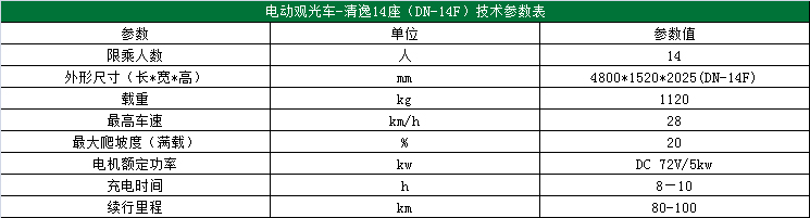 玛西尔—清逸14座(DN-14)电动观光车是专为旅游景区、公园、大型社区、宾馆、大型游乐场、花园式酒店、度假村、别墅区、机场、港口、码头等场所开发的新型车辆。订购热线:021-55131366