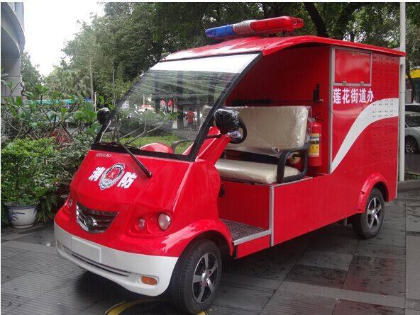 电动小型消防车具有多功能、多用途、外形美观、乘坐舒适、驾驶灵巧等特点。驾驶舱两侧敞开式的设计方便操作人员下车。车辆具有较强的安全性、舒适性及可操作性,适用于街道、社区、工厂、学校、景区等场所的消防、治安巡逻、行政执法。