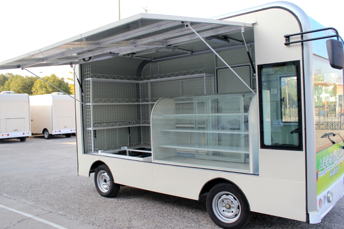 玛西尔新款移动电动餐车,是专门为在学校医院、工业园区、大型工厂、车站港口等场所移动售卖食物或饮料、日常用品等的新型车辆。该车操作简单,移动灵活,机动性强;内部空间大,可以灵活设置不同组合的货架;外形可以灵活调整,以适应不同的环境;节能环保,耗电量低。