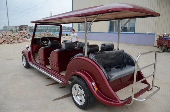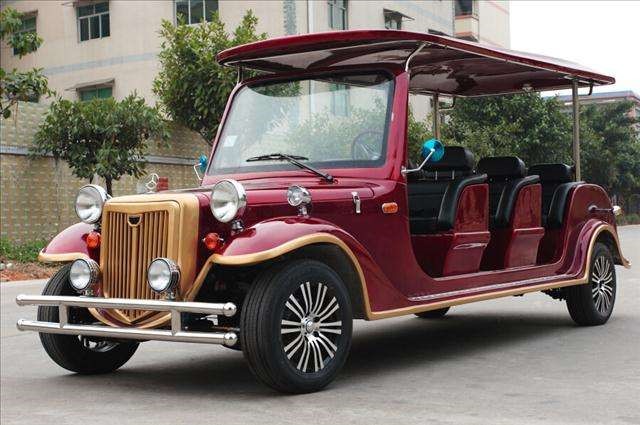 玛西尔电动老爷车是专为楼盘小区、旅游景区、公园、大型游乐场、封闭小区、校园、花园、度假村、别墅区、城市步行街、机场、港口、码头等开发的环保型乘用车辆,具有性能卓越、外形豪华气派、经典怀旧。外形新颖、内饰豪华精致、乘坐舒适安全的特点,是理想的场内电动观光车。