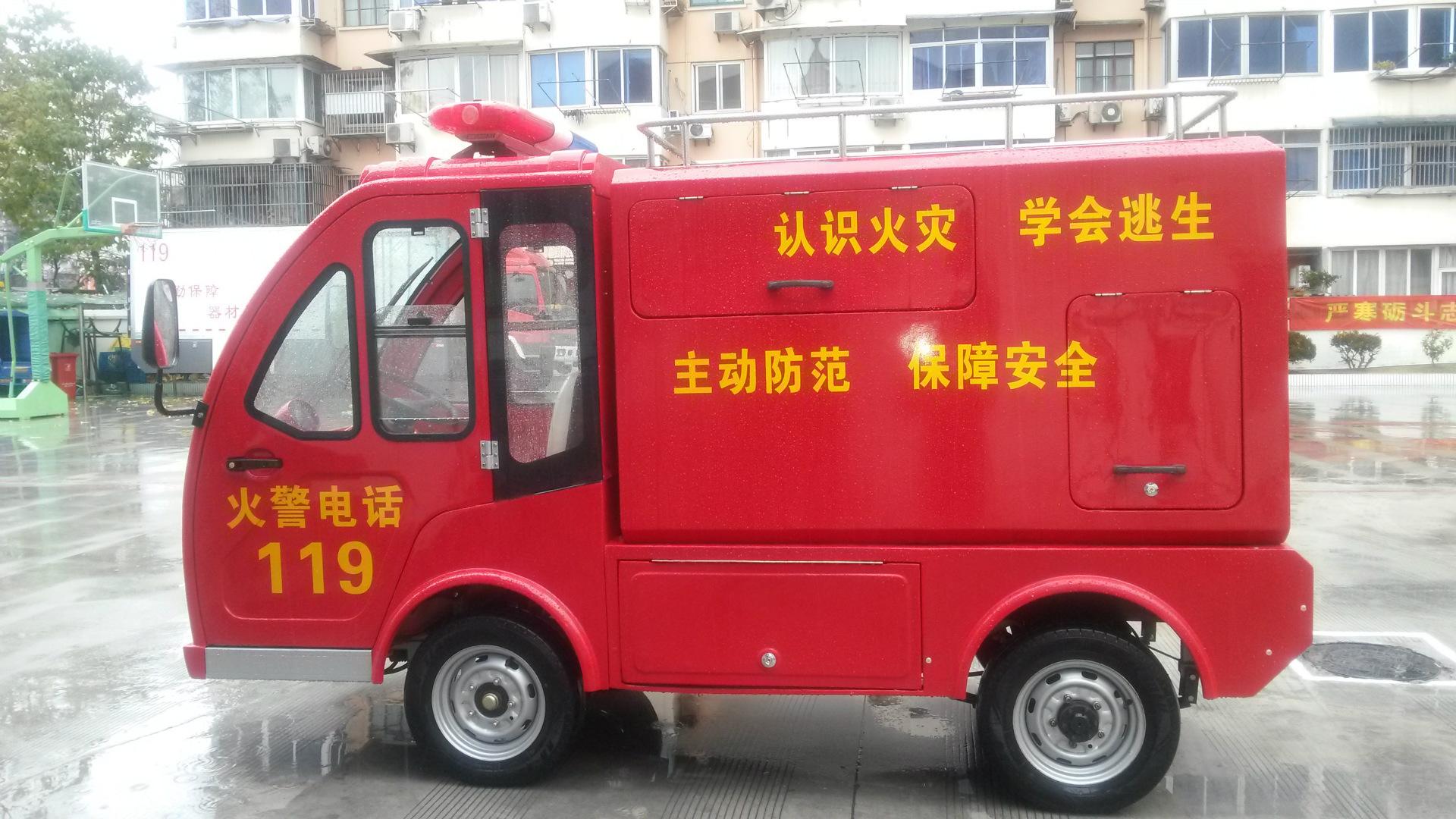 玛西尔2人座带水箱电动消防车(DVXF-4),整车时尚靓丽,造型简洁大方,操作简单便捷;车上配有高压水泵、消防锤及灭火器等工具,是消防单位理想的消防车辆。